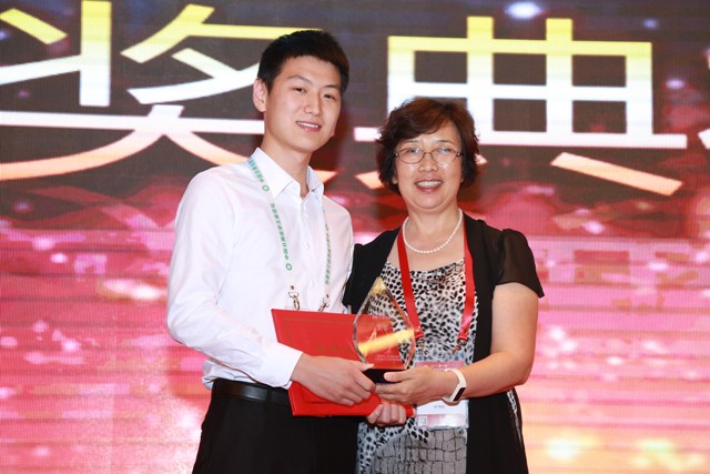 中國(guó)洗滌用品工業(yè)協(xié)會(huì)鄭舞虹理事長(zhǎng)向一等獎(jiǎng)獲得者頒獎(jiǎng)